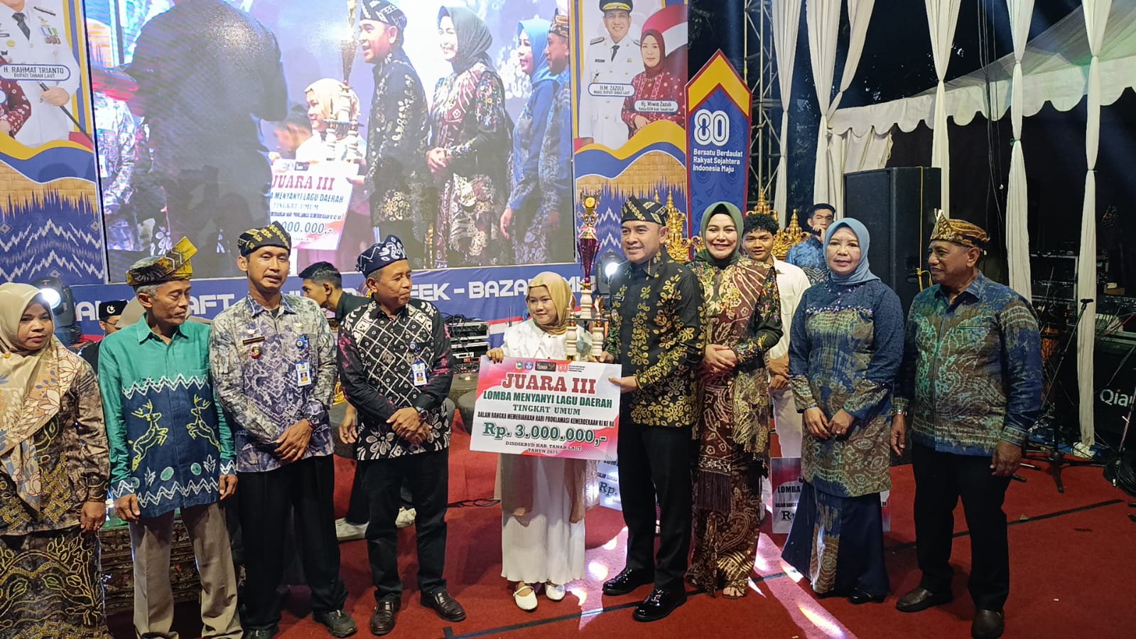 “Selamat kepada para pemenang. Terus kembangkan kreativitas, jadikan potensi daerah sebagai kebanggaan yang bisa mengharumkan nama Tanah Laut,” tegasnya.