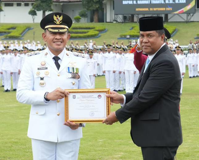 Terbitkalimantan.com, Sumedang – Bupati Tanah Laut (Tala) H. Rahmat Trianto resmi menerima penganugerahan Alumni Kehormatan Institut Pemerintahan Dalam Negeri (IPDN) dalam upacara resmi di Lapangan Parade Kampus IPDN Jatinangor, Sabtu (20/9/2025).