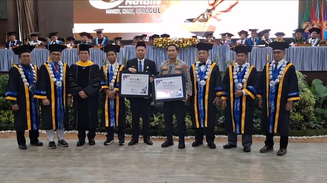 Penghargaan itu diserahkan langsung oleh Rektor ULM, Prof. Dr. Ahmad Alim Bachri, M.M., kepada Kapolda Kalsel Irjen Pol Rosyanto Yudha Hermawan, S.I.K., S.H., M.H., yang diwakili Karo SDM Kombes Pol Maulana Hamdan, S.I.K., di Auditorium ULM Banjarbaru.