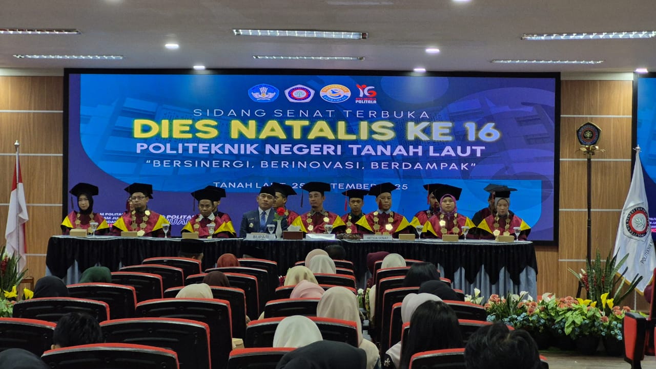 Terbitkalimantan.com, Pelaihari – Politeknik Negeri Tanah Laut (Politala) menggelar Sidang Senat Terbuka dalam rangka memperingati Dies Natalis ke-16 di Aula Gedung Kuliah Terpadu Al-Banjari, Kamis (25/9/2025).