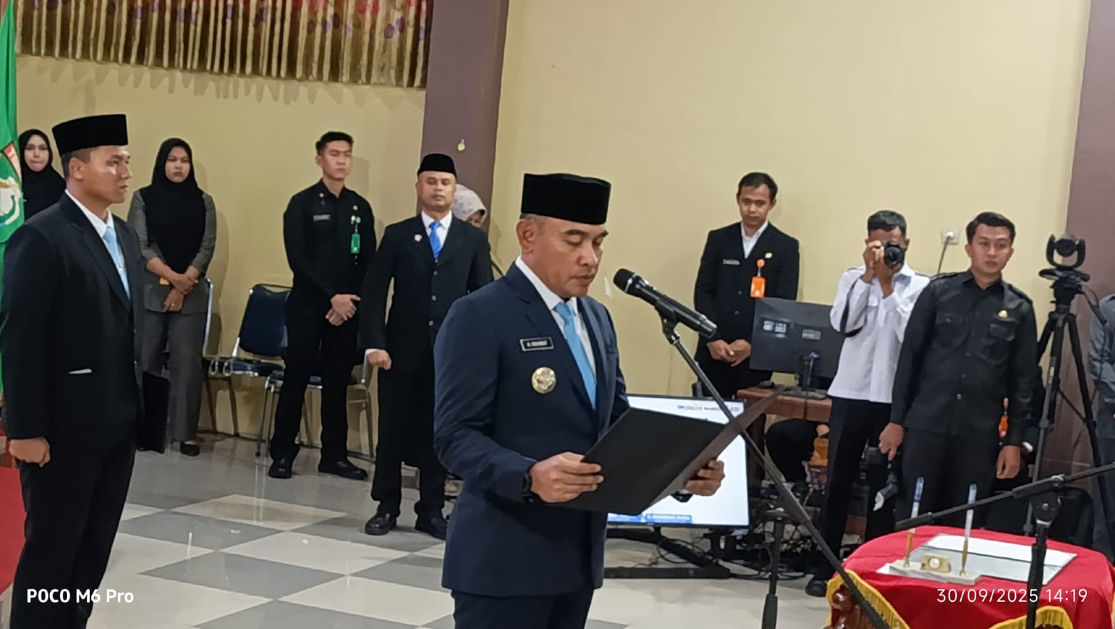 Terbitkalimantan.com, Pelaihari – Bupati Tanah Laut, H. Rahmat Trianto, melantik Dr. Ir. H. Akhmad Hairin, M.M., M.P. sebagai Asisten I Bidang Pemerintahan dan Kesejahteraan Rakyat, Selasa (30/9/2025). Prosesi pengambilan sumpah jabatan berlangsung dihadiri jajaran Forum Komunikasi Pimpinan Daerah (Forkopimda), Wakil Bupati, Sekretaris Daerah, serta seluruh kepala SKPD.