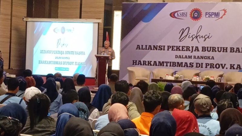 Kegiatan yang mengangkat tema “Harkamtibmas Ketenagakerjaan dalam Menciptakan Iklim Usaha yang Produktif dan Berkeadilan” ini dibuka langsung oleh Kapolda Kalsel Irjen Pol Rosyanto Yudha Hermawan, S.I.K., S.H., M.H. dan dihadiri ratusan peserta, termasuk unsur pemerintah daerah, pengusaha, BPJS Ketenagakerjaan, serta sekitar 360 perwakilan serikat buruh dari berbagai sektor di Kalimantan Selatan.