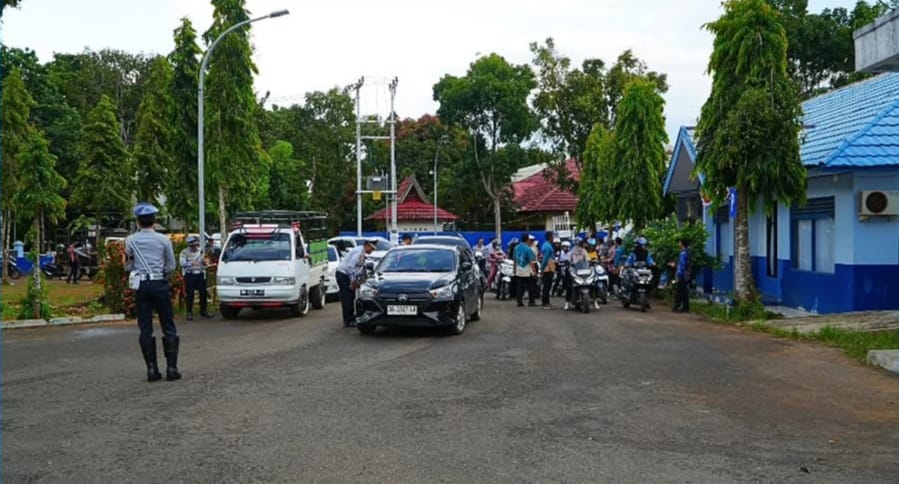 “Hari ini kita menyempatkan waktu untuk melaksanakan kegiatan tertib berkeselamatan. Mudah-mudahan kegiatan ini berjalan tertib dan lancar,” ujarnya.