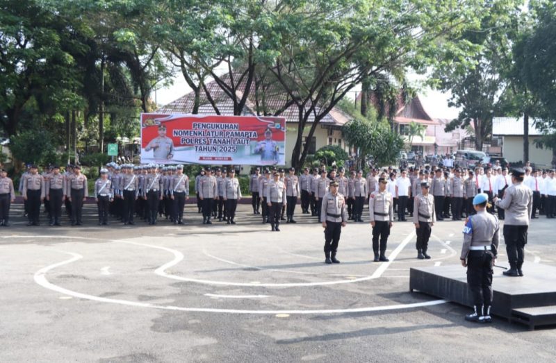 Terbitkalimantan.com, Tanah Laut – Kapolres Tanah Laut AKBP Ricky Boy Siallagan, S.I.K., M.I.K. memimpin langsung kegiatan Pengukuhan Nomenklatur Pamapta (Perwira Samapta) Polres Tanah Laut yang digelar di Lapangan Apel Mapolres Tanah Laut, Senin (20/10/2025).