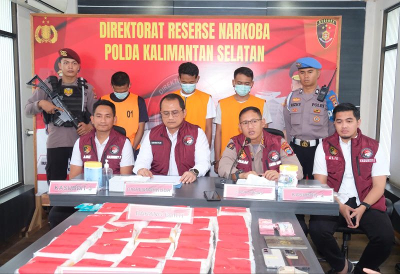 “Ketiga pelaku ini berasal dari luar daerah yaitu Lampung, Bojonegoro dan Pekanbaru yang terafiliasi dengan DPO Fredy Pratama,” pungkas Dir Resnarkoba Polda Kalsel Kombes Pol Baktiar Joko Mujiono.