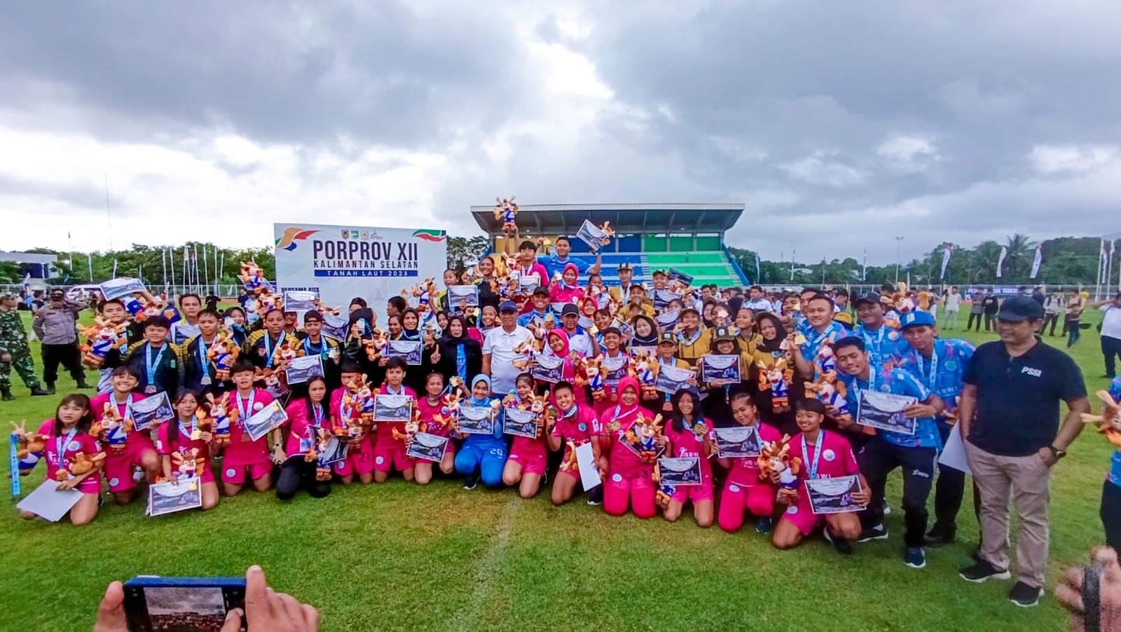 Meski pertandingan diguyur hujan, semangat para pemain dan suporter Tanah Laut tetap membara. Sorak kemenangan pecah ketika peluit panjang berbunyi, memastikan dominasi Tanah Laut di ajang Porprov kali ini. Seusai laga, digelar acara seremoni pengalungan medali di tengah lapangan oleh pejabat resmi Porprov XII Kalsel. Tim Kotabaru dan Banjarbaru menempati posisi juara 3 bersama, sementara Tapin menjadi runner-up dan Tanah Laut resmi menyandang gelar juara pertama.