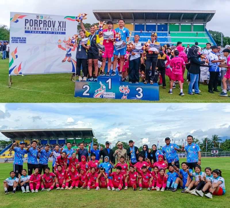 Terbitkalimantan.com, TANAH LAUT – Perjuangan panjang Tim Sepak Bola Putri Tanah Laut akhirnya berbuah manis. Dalam laga final Porprov XII Kalimantan Selatan yang digelar di Stadion Pertasi Kencana, Kamis (13/11/2025), skuad Women’s Tala sukses menahan imbang Tim Tapin dengan skor 1–1. Hasil tersebut mengantarkan Tanah Laut keluar sebagai juara umum cabang sepak bola putri dengan total 13 poin, unggul atas Tapin yang mengumpulkan 9 poin.